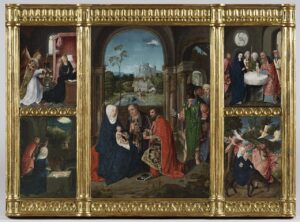 Master of Hoogstraeten, scenes of the infancy of Christ from an altarpiece, c. 1500. Wikimedia Commons.