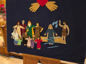 On Friday evening, I used the felt board to tell the story of Jesus’ baptism. The script gives these words to John the Baptist: